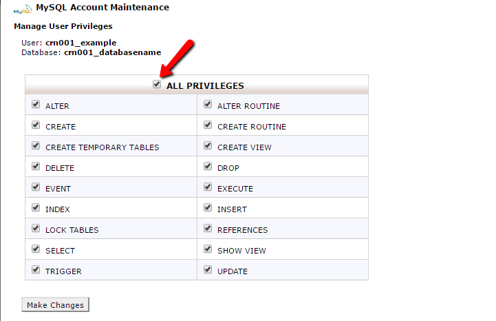 পরের পৃষ্ঠায়, সেই ব্যবহারকারী নামটি সমস্ত সুবিধাগুলি দেওয়ার বিষয়টিও নিশ্চিত করুন :