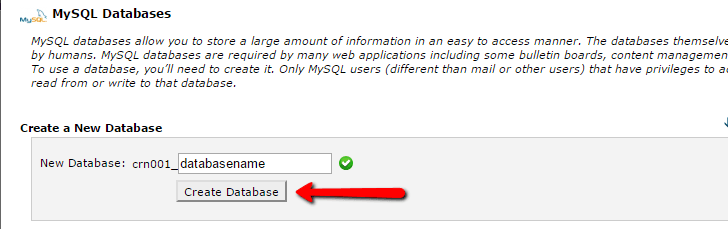 একটি নতুন ডাটাবেস তৈরির জন্য আপনার একটি বিকল্প দেখতে হবে । আপনার ডাটাবেসের জন্য একটি নাম লিখুন এবং তৈরি করুন ডাটাবেস: